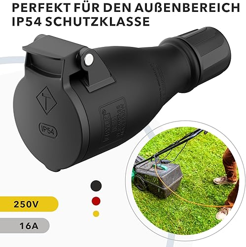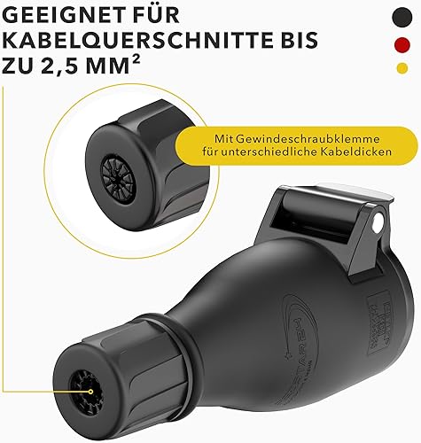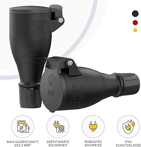 Schuko Stecker 230V IP54 - 3er Set Robuster Schutzkontaktstecker aus Gummi & Kunststoff, Schwarz | Hermetisch Versiegeltes Design | Perfekt für den Außenbereich | 3-Poliger Stromstecker