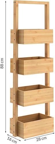 Casaria® Badregal Standregal Bambus 4 Ablagen 88x16x28 cm Holz Küchenregal Korbregal Bad Badezimmer Küche Regal Schmal
