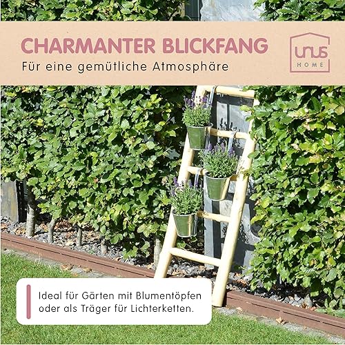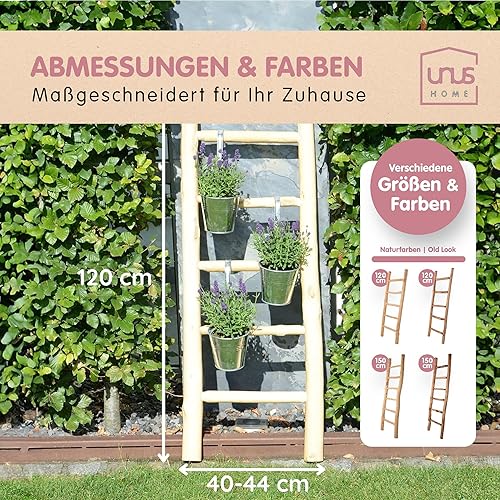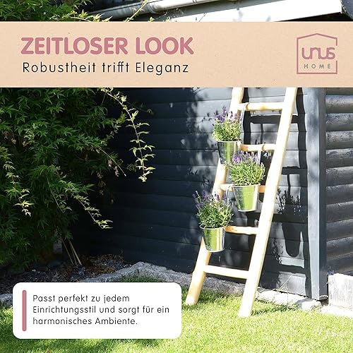 UNUS Dekoleiter Holz, 150cm 6 Stufen, Old Look, Holzleiter Deko Leiter Wand Dekoration, Handtuchhalter stehend, gefertigt aus Eschenholz