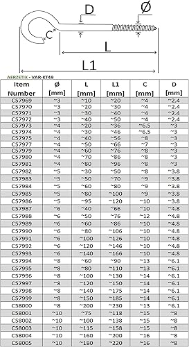 AERZETIX - C58000 - Set mit 5 Haken abgewinkelte augenschrauben zum schrauben Ø8x200mm in form C - offener haken mit selbstschneidender schraube - aus verzinktem stahl - farbe silber