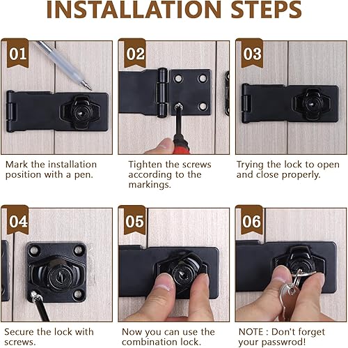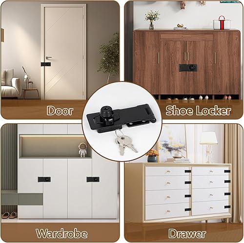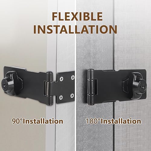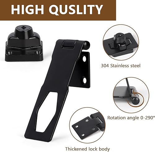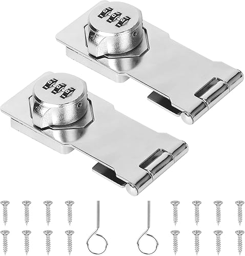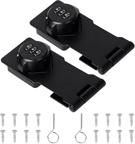 EXLECO 2 STK Überfalle mit Zahlenschloss Vorhängeschloss, Haspe Edelstahl Kellerschloss Schrankschloss Türriegel Außen Sicherheitsüberfalle Schiebetür Schloss für Gartentor Tore Garage Schwarz