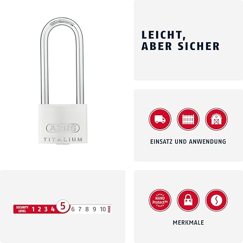 ABUS Vorhängeschloss Titalium 64TI/40HB63 gl.-6411 - gleichschließend und mit hohem Bügel - Kellerschloss mit Schlosskörper aus Spezial-Aluminium - ABUS-Sicherheitslevel 5