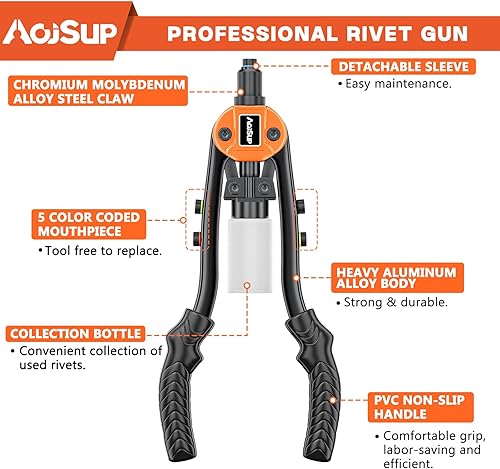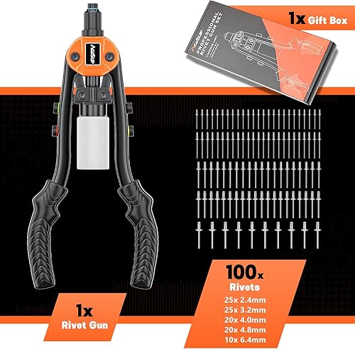 AojSup Nietenzange Nietzange Set inkl. 100 Nieten, Blindnietzange für 2,4mm-6,4mm, Profi Handnietzange | Blindnieten | Popnietenzange Set