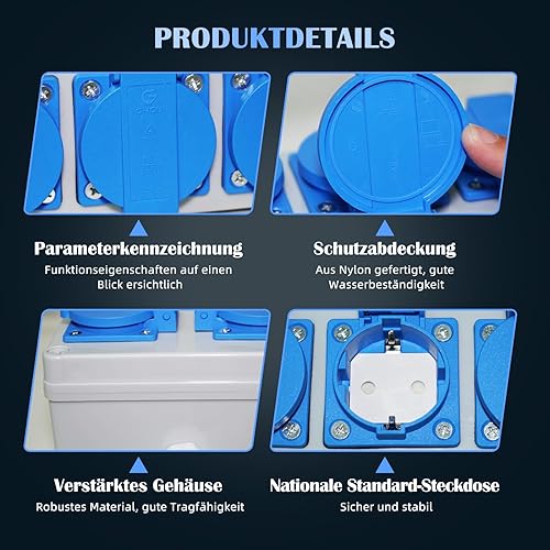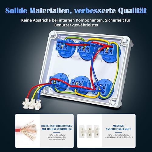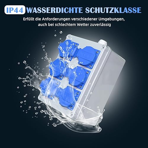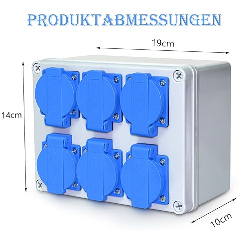 Wandverteiler Stromverteiler 6x230V IP54 Baustromverteiler Innen Verdrahtet Stromverteiler Aussen Wasserdicht für Indoor Outdoor-Bereich, Werkstätten und Fabriken 16A
