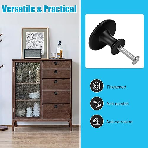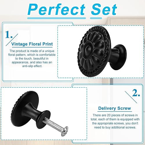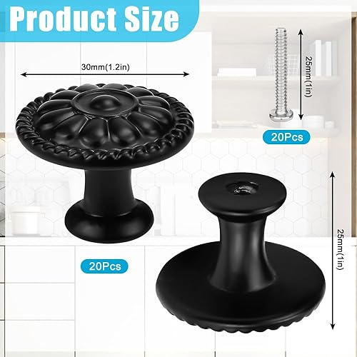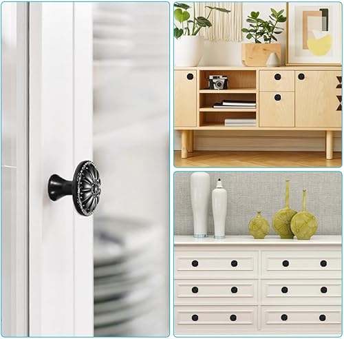NAROSEBE 20 Stück Möbelknöpfe Schwarz Matt Schubladenknöpfe Schrankknöpfe Vintage Blumen Kommodenknöpfe Schwarz Schrankknäufe Küchenknöpfe Vintage Rund schrankknopf für Möbel Kommode (A)