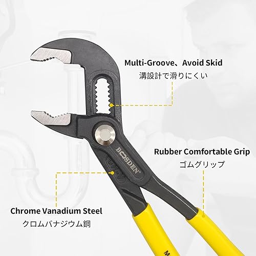 BOOSDEN Rohrzange, 248mm Wasserpumpenzange, Armaturenzangen, CRV, Schnell Verstellbare Wasserrohrzange für Heimreparaturen, Greifen, Muttern, Schrauben, Rohre und Armaturen