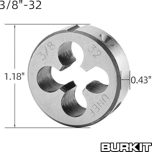 Burkit 3/8 Zoll-32 UNEF Gewindebohrer und Schneideisen Set Rechtshänder, 3/8 x 32 UNEF Maschinengewindebohrer und runde Schneideisen