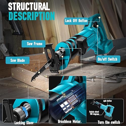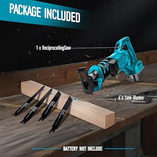 WingFly Akku-Reciprosäge für Makita 18V Akku, Professional Säbelsäge mit 4 Sägeblättern, 3000RPM Elektrischer Säbelsägen mit stufenlosem Drehzahlschalter, Kann Metall, Holz(ohne Akku)