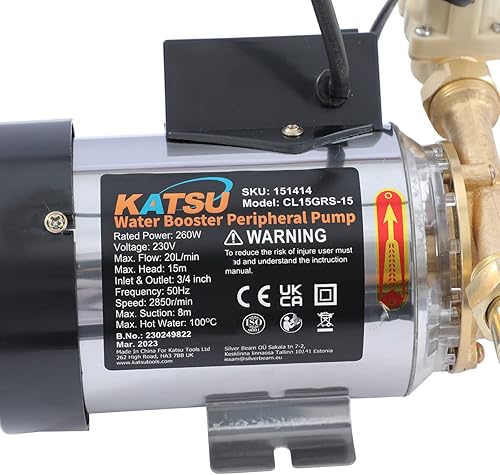 KATSU Wasser Booster Pumpe 260W, Automatischer Ein-Aus-Druckkontrollschalter, Heiß- und Kaltwasserpumpe für Gartenduschen Waschmaschine 151414