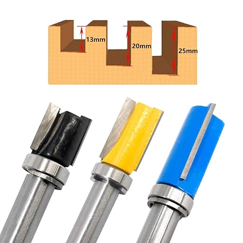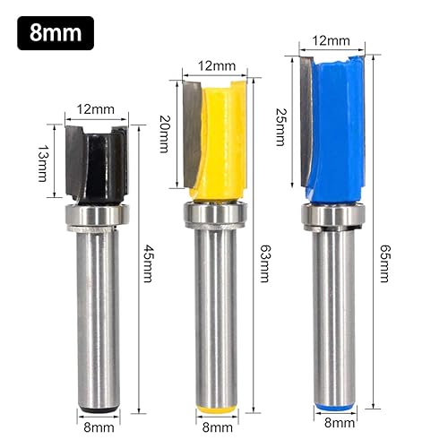 Saipor 3 Stück Bündigfräser with 8mm Schaft Nutfräsen Holz Fräser Router Bit Oberfräser Flush Trim Router Bit Kopierfräser Holzbearbeitung Fräswerkzeuge für Trimm Carving Tool