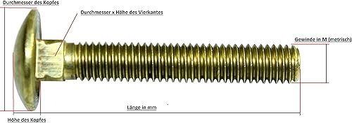 SN-TEC Massiv Messing Schlossschrauben/Flachrundkopfschrauben/Schloßschrauben M8 x 70mm ähnlich DIN603 (10 Stück)