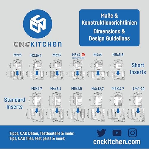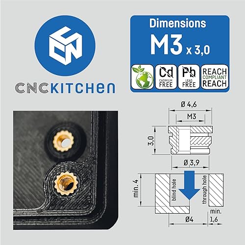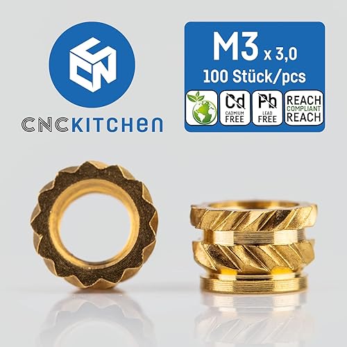 CNC KITCHEN Original Gewindeeinsatz, M3x3, kurze Version, 100 Stück