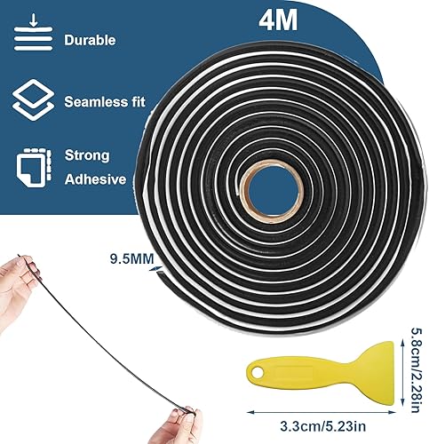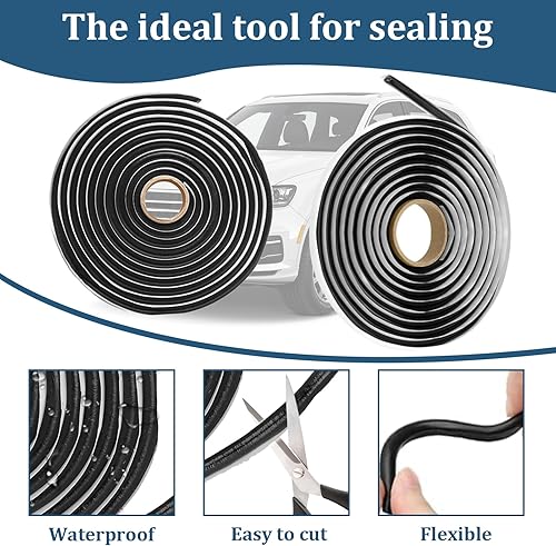 Butylschnur 9,5 MM (Φ) x 4 M (L), Butylband Schwarz Butylkautschuk Klebeband Wasserdicht, Waterproof Tape Butyl Rubber, Butyl Dichtband für Scheinwerfer Fenster Windschutzscheibe von Auto LKW