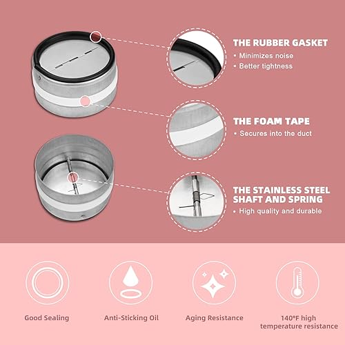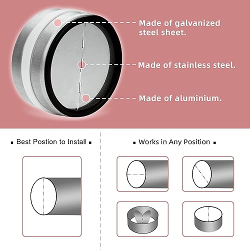 WeCooper Einschub Rückstauklappe DN150 mm Dunstabzug, Verzinkter Stahl mit Dichtgummi Alu Klappen