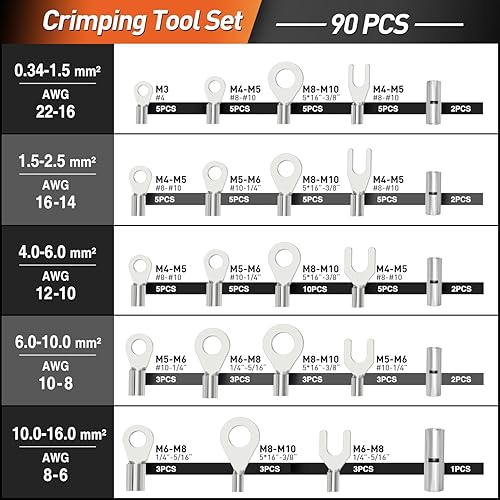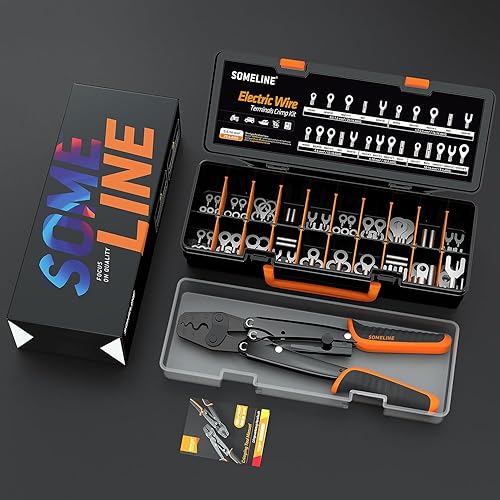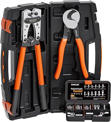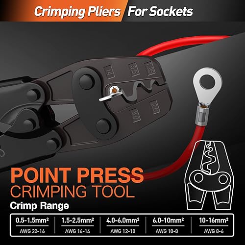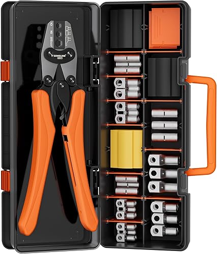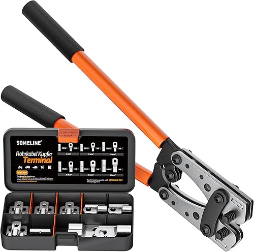 SOMELINE® Crimpzange Kabelschuhe Set, Rohrkabelschuh Zange 10-25 mm², Ringkabelschuhe Verzinnte Bolzenloch Kupferklemmen, Krimpzange - Presszange - Quetschzange - Crimp Zange - Elektrowerkzeug Set