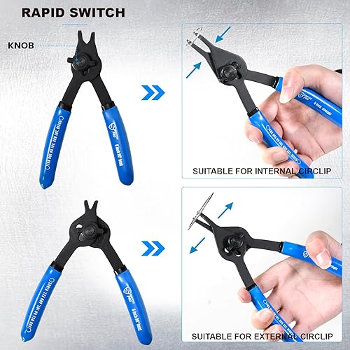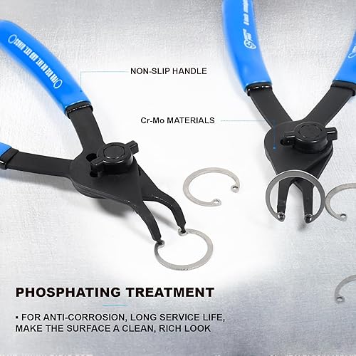 SMOTIVEPRO 12tlg Vielseitiges Sprengringzangen Set, Präzision Interne Externe Sicherungsringzange mit Geraden Gebogenen Kiefern für 0,038-Zoll 0,047-Zoll 0,070-Zoll und 0,090-Zoll Sicherungsringe