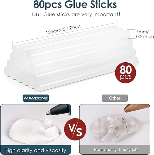 MAXDONE Heißklebepistole 50W Klebepistole kleine mit 80 Heißklebesticks 7 * 130mm = 104Pcs 7 * 100mm Transparente Klebesticks für DIY Kleine Handwerk und schnelle Reparaturen in Haus & Büro mit Halter