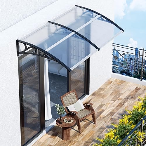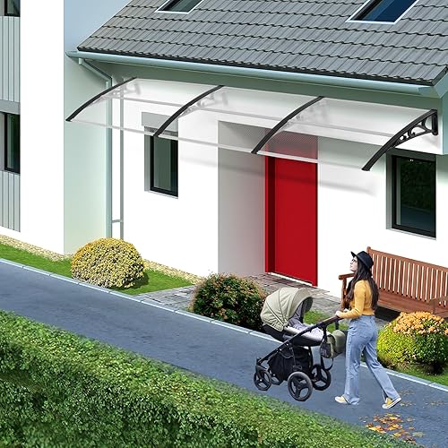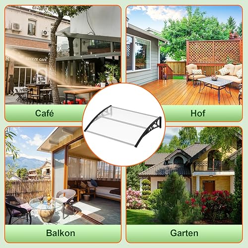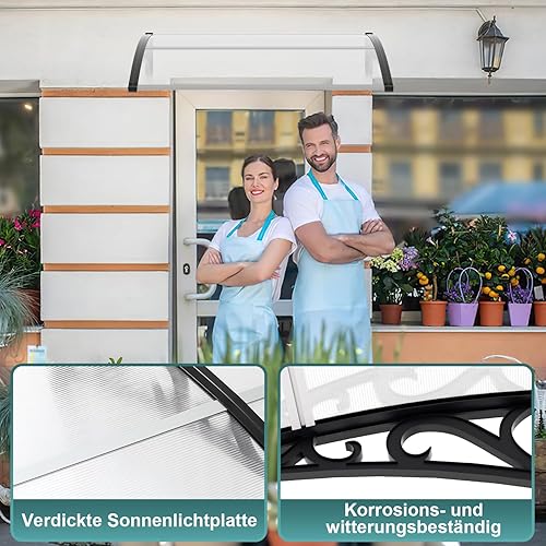 EINFEBEN Vordach für Haustür 200 x 100 cm Pultbogenvordach Transparent Polycarbonat Pultvordach Überdachung 5 mm, PP Halterung,Türdach für draußen Sonnenschutz Regenschutz