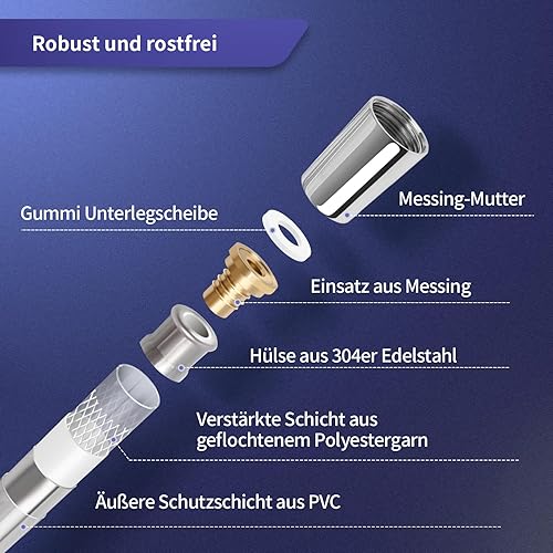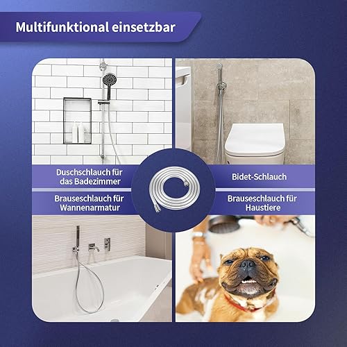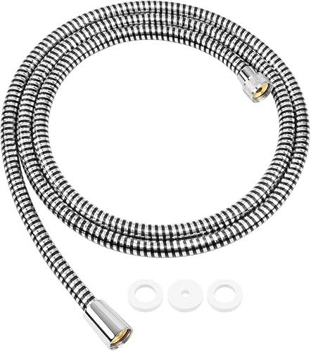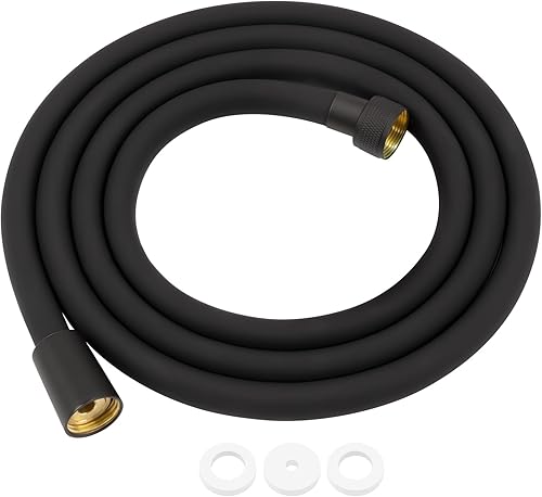 FEVONE Duschschlauch Schwarz 1.5 Metri glatt Brauseschlauch, Kunststoff Brauseschlauch mit Messinganschlüssen, Universalanschluss 1/2' Knick und verdrehsicher, auslaufsicher