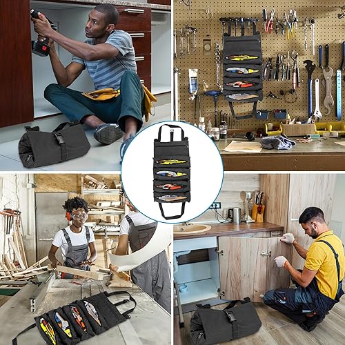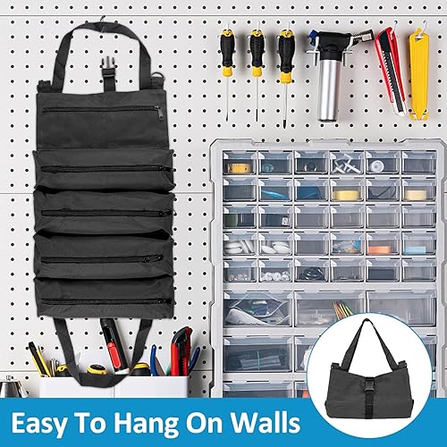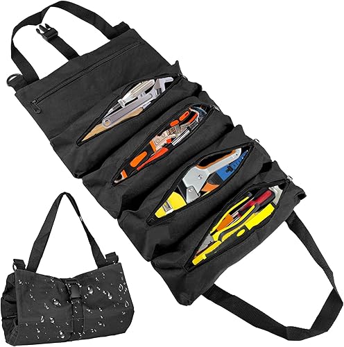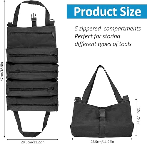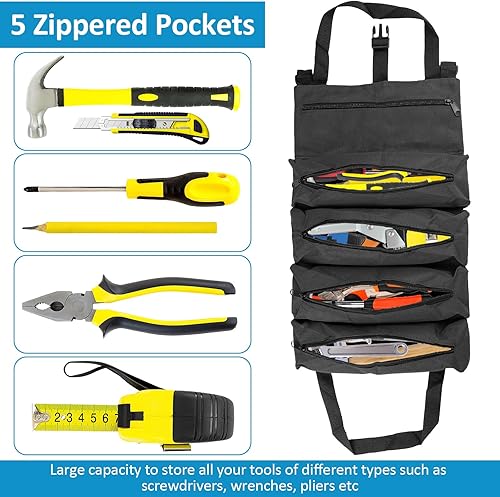 Werkzeug Rolltasche, Werkzeugtasche Klein, Werkzeugtasche Leer, Werkzeugrolle mit 5 Reißverschlusstaschen, Canvas Schraubenschlüssel Werkzeugtasche für Elektriker Klempner Handwerker-Grün