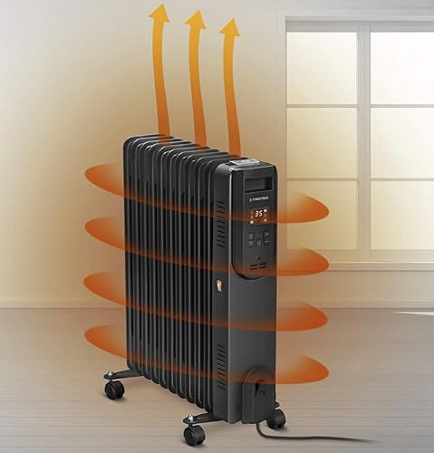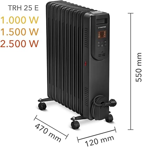 TROTEC Ölradiator TRH 25 E – Heizleistung 1000 W / 1500 W / 2500 W – Heizradiator elektrisch, 11 Rippen, mit Fernbedienung, schwarz