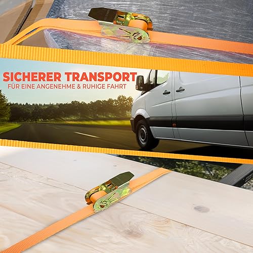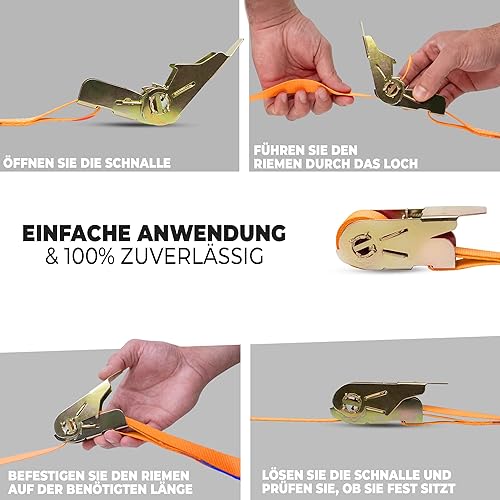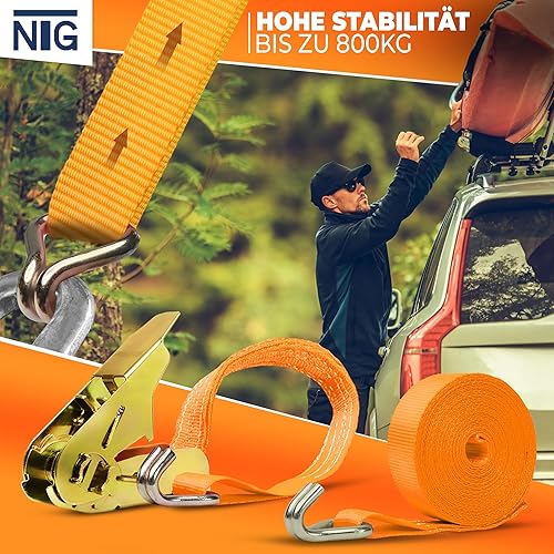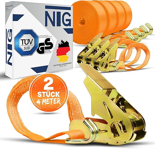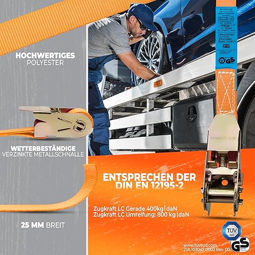 NTG Spanngurte mit Ratsche | 2, 4, 6, 8, 10 oder 20 Stück | 800 kg | 4m | 2 teilig | TÜV/GS geprüft | zweiteilig mit Haken | Ratschengurt | Zurrgurte | 25mm | 0,8 t (2 Stück)