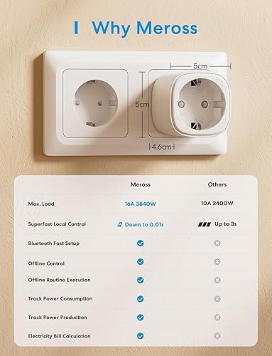 Meross Smart Steckdose mit Stromverbrauch, WLAN Steckdose Outdoor Stromzähler für Balkonkraftwerk Außensteckdose wasserdichte IP44, funktioniert mit HomeKit, Alexa und Google, 16A 1.5m