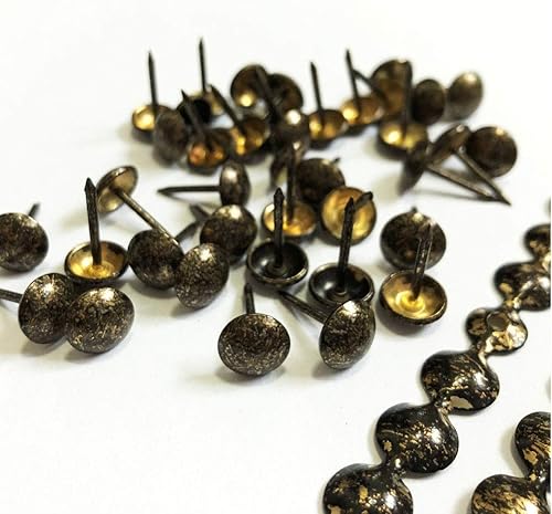 Let's Decorate 5 Meter Polster-Reißzwecken-Streifen, antike, dekorative Nagelstreifen, Sofa-Zierleisten, für Innenbereich, Garten, Stuhl, lose Reißzwecken, aufeinander abgestimmt (9,5 mm, antik)