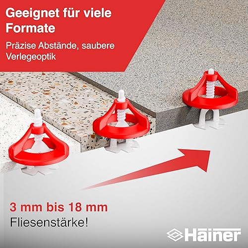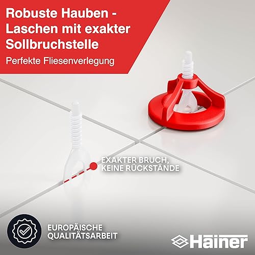 Hainer® Fliesen Nivelliersystem – 300-tlg Fliesenverlegehilfe Starterset/Nachfüllpack, perfekte Fliesen Abstandshalter für saubere Ergebnisse (Set 100 Hauben + 200 Laschen, 2mm)