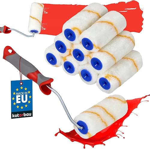 KOTARBAU® 10er Set Farbroller Gelbfaden 115 mm mit Gummigriff Pinsel Farbwalze Walzenbürste Rollerwalze Rollerpinsel für Anstricharbeiten und Renovierung