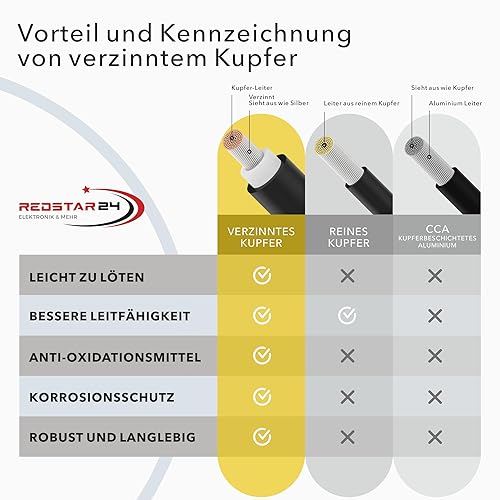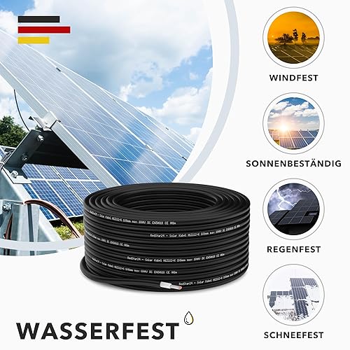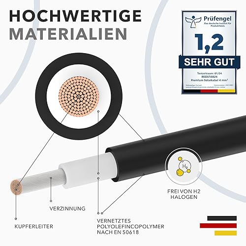RedStar24 Premium Solarkabel 4mm² Schwarz - 100m - TÜV SÜD geprüft - UV-beständig, flexibel, Photovoltaik Kabel, PV Kabel, Solar Anschlusskabel für Solarpanel, Wechselrichter & Laderegler - langlebig