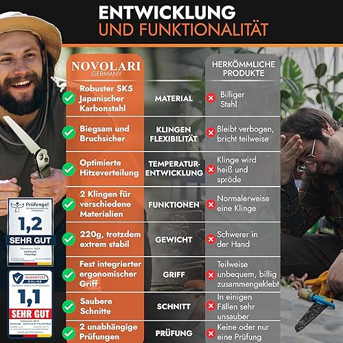 Novolari® Premium Klappsäge 20cm Patentierte Japanklingen bruchsicher inkl. Gürteltasche 2in1 Säge für Holz, Alu, Kunststoff - Survival Astsäge Outdoor Camping Garten Bushcraft Multifunktionssäge