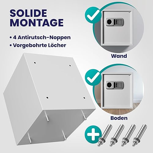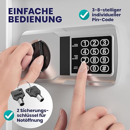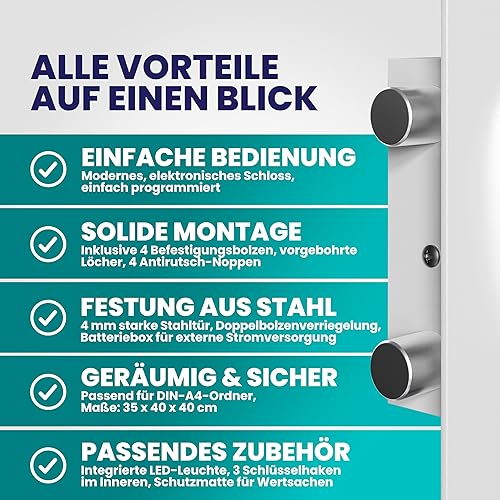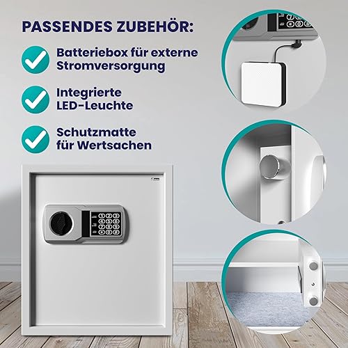 DEUBA® XXL elektr. Tresor 35x40x40cm 4mm Türstärke Doppelstahlbolzen Innenbeleuchtung inkl. Montagematerial Safe Möbeltresor Dokumententresor Silber