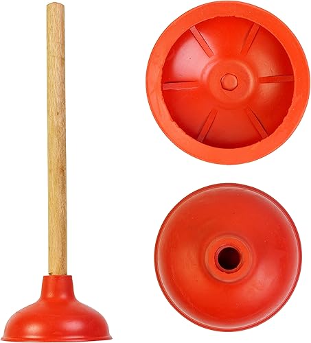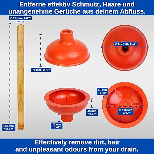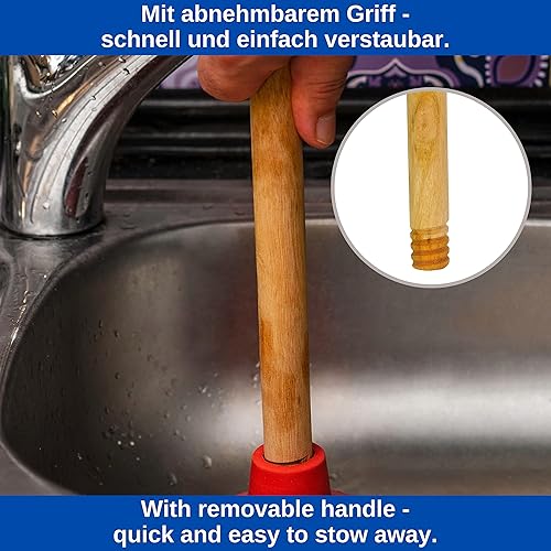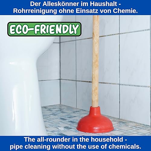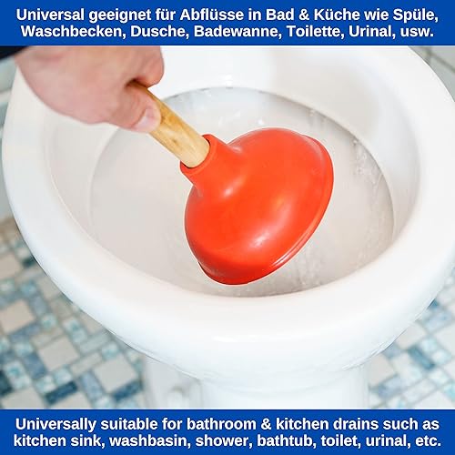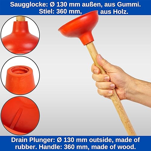 Universal Pömpel, Ø 130 mm Durchmesser Saugglocke für Spüle, Waschbecken, Toilette, Urinal, Dusche, Badewanne, Über - und Unterdruck Abflussreiniger mit 36 cm Holzstiel, Verstopfungslöser Bad Küche