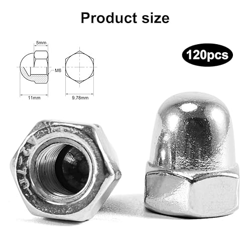 120 Stück Hutmuttern M6 Edelstahl Kappenmuttern, DIN 1587 Hohe Form Hochwertige A2 V2A Kappenmuttern, Sechskant Hutmuttern für Schrauben Gewindestangen & Gewindebolzen