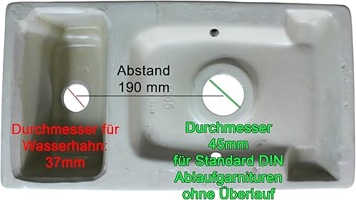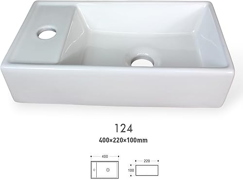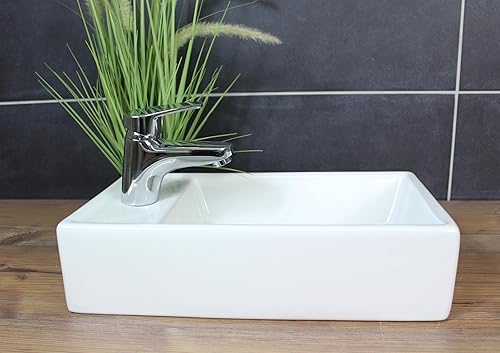 Aufsatzwaschbecken aus Keramik, 40 x 22 x 10 cm, Weiß rechteckig Gäste WC Waschbecken Waschschale eckig Badezimmer