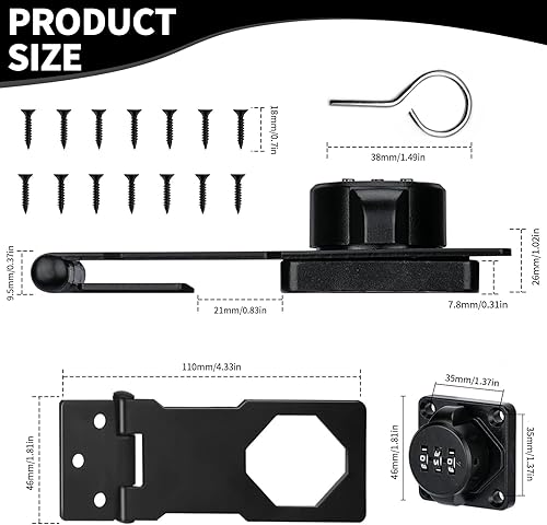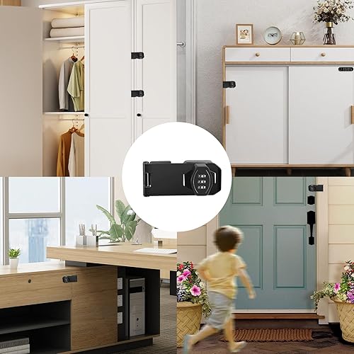 2 Stück Sicherheitsüberfalle, Überfalle Abschließbar Schrank Schloss mit Code Zahlenschloss 3-Stelliges Türriegel Drehbare 4 Zoll für Kleine Türen Schränke Garten(Schwarz)