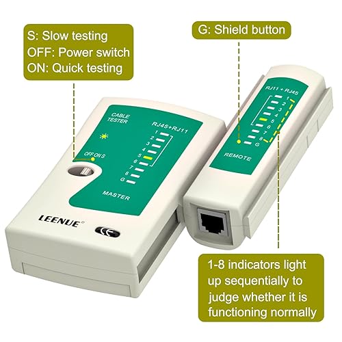 LEENUE Netzwerktester Kabeltester, Lan Tester POE, RJ45 Netzwerkkabel Tester, Netzwerk Testgerät für Cat7 Cat6A Cat6 Cat5 Lan Kabel und RJ11 Telefonkabel