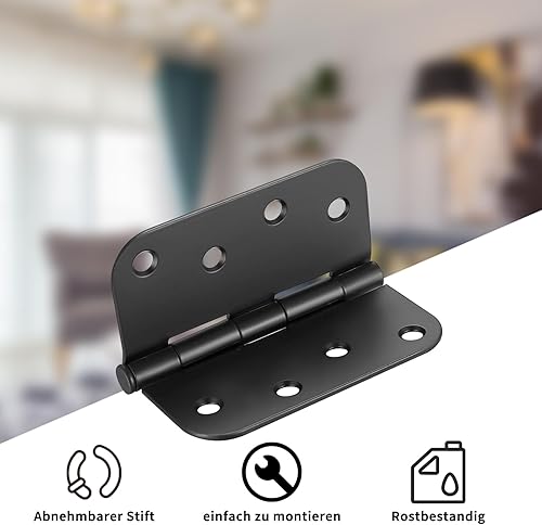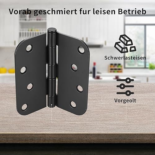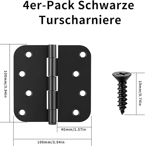 4 Stk Scharniere Klappbar, 100x100mm Schwarze Scharniere Schwerlast, Türscharniere Schwarz, Tür Scharnier Set, Klavierband Scharnieren, Scharnierband Scharnier für Außen Innentüren, mit Schrauben