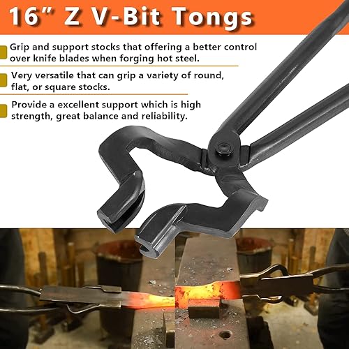 E-cowlboy Schmiedezange 16 in Z-Zange im V-Bit-Stil, Zange mit V-Bit-Backen, Schmiede-Amboss-Werkzeug, Schmiede-Schmiedewerkzeug, Klingenschmiede-Messerherstellungszange