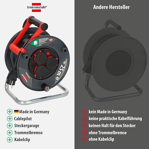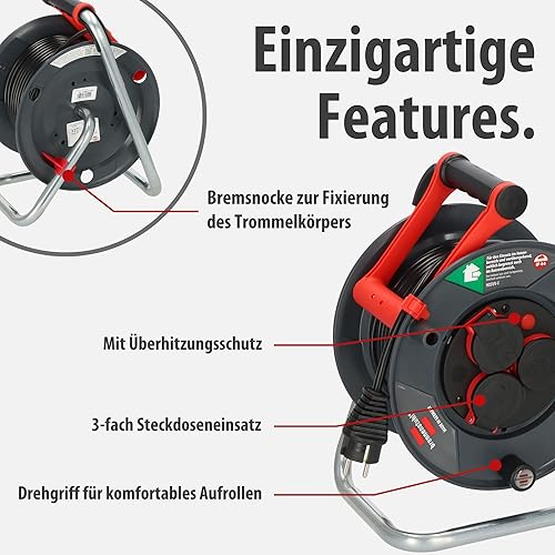 Brennenstuhl Garant V2 IP44 Kabeltrommel 50m outdoor (Made in Germany, 3 Schutzkontakt-Steckdosen mit erhöhtem Berührungsschutz, Spezialkunststoff)