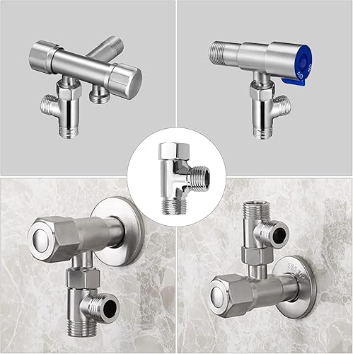 G1/2 Zoll Umstellventil, Messing, 3-Wege-T-Form-Adapter, universelles Duschsystem, teil, Wasser-Umstellventil, Duschschlauch-Verteiler f眉r Hand-Bidet und Sprayer, Chrom