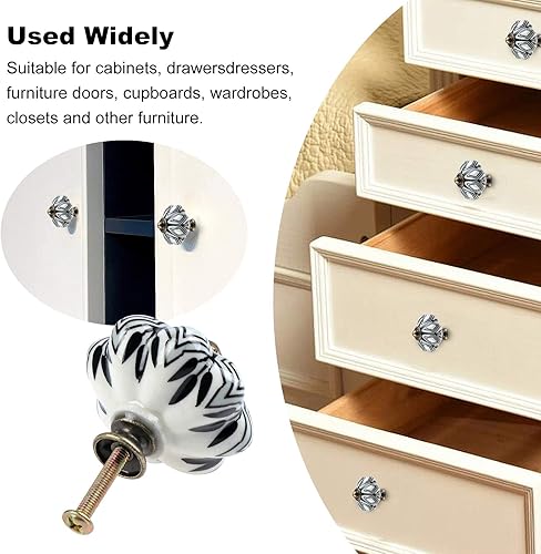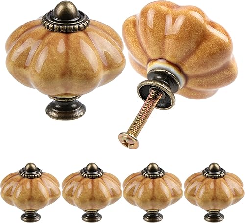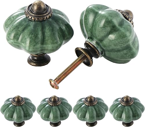TsunNee 6 Stück Keramik-Schrankknäufe, schicke Schubladenknöpfe, antiker Kürbis, Küchenschrankgriffe, runde Möbel-Türknäufe, Grün