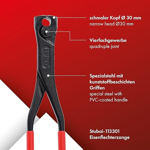 Eisenflechterzange mit schmalem Kopf | Ø 30 mm | STUBAI Vierfachgewerbe Kneifzange, Monierzange, Rabitzzange für die Metallbearbeitung, zum Flechten von Drähten an Baustahlgeweben