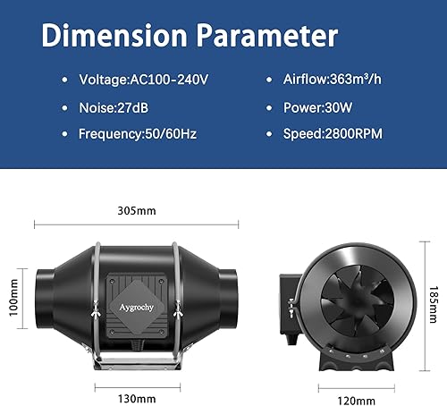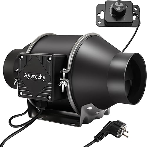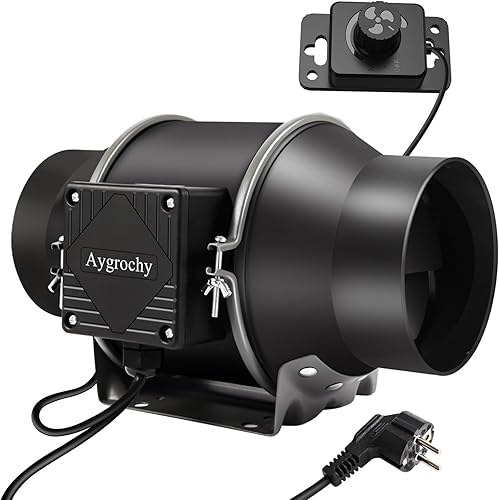 Aygrochy Regelbar Rohrventilator 100mm, Abluftventilator 363 m³/h, EC motor Rohrlüfter mit EU-Stecker,für Keller, Garage, Küche, Badezimmer,Wachstumszelte, Hydrokulturen,Belüftung und Abluftgebläs.