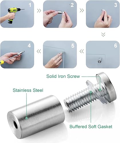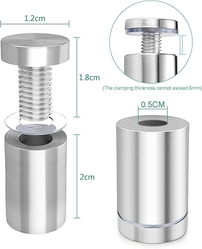 Senbaler 20 Wand Abstandshalter Edelstahl,Schilderhalter,Werbeschraube für Montieren und Befestigung Glas Spiegel Acryl Poster Bilderrahmen (12X25MM)