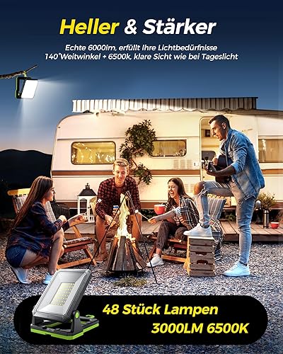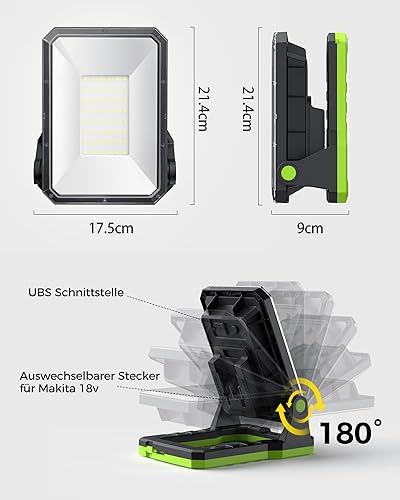 Akku Lampe für Makita 18 V, ETOOLAB LED Baustrahler, [Verbessertes]Echter 3000lm Akku Baustrahler[Batterie nicht enthalten], LED Lampe mit 4 Modi, für Outdoor/Baustelle/Camping/Hofparty