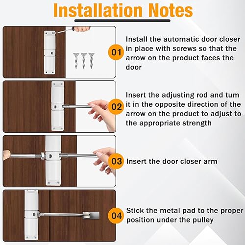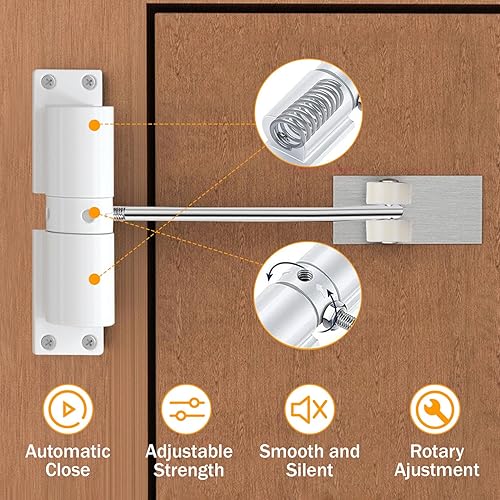 Forhandy Automatischer Türschließer Innentür Einstellbar Federbelasteter Türschließer Ohne Bohren mit 4 Schrauben und Einstellhebel für Zuhause Büro Schlafzimmer