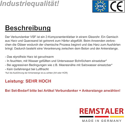 10x Remstaler VERBUNDANKER + ANKERSTANGE im SET | Stahl verzinkt/Edelstahl A4 | M8 M10 M12 M16 M20 | -HÖCHSTE QUALITÄT- direkt vom Hersteller (Verzinkter Stahl, M10x165 / 10 Stk.)