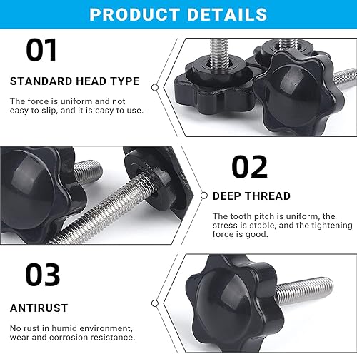Klemmknopf, M6 x 40 mm, 12 Stück, Klemmknopf, Sternform, Kunststoffkopf, Rändelschrauben, Einstellung, Klemmschrauben, für Maschinen, Industrie, Ausrüstung, Schwarz